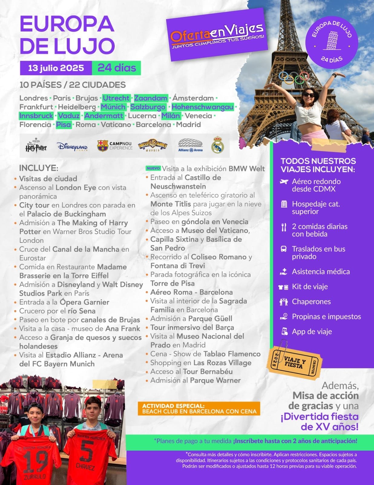 - Los precios indicados en este documento son de carácter informativo y deben ser confirmados para realizar su reservación ya que están sujetos a modificaciones sin previo aviso.