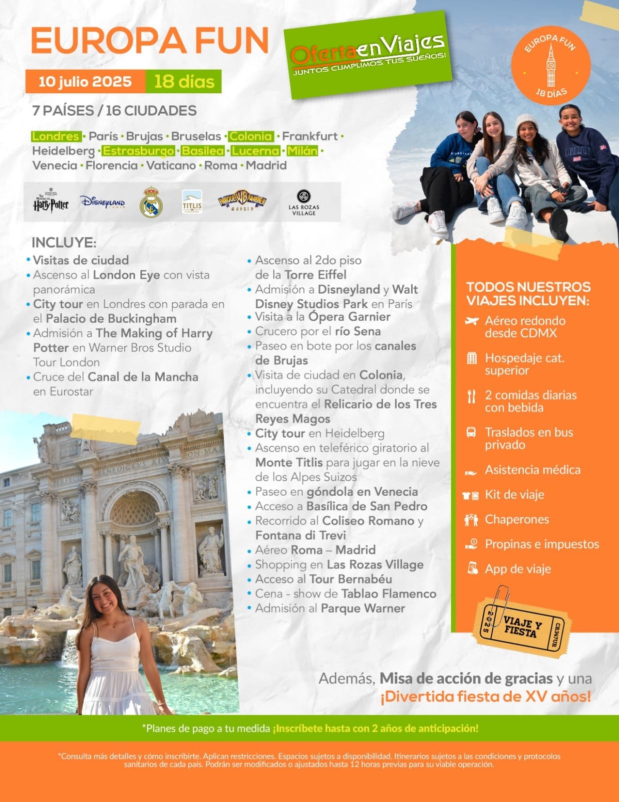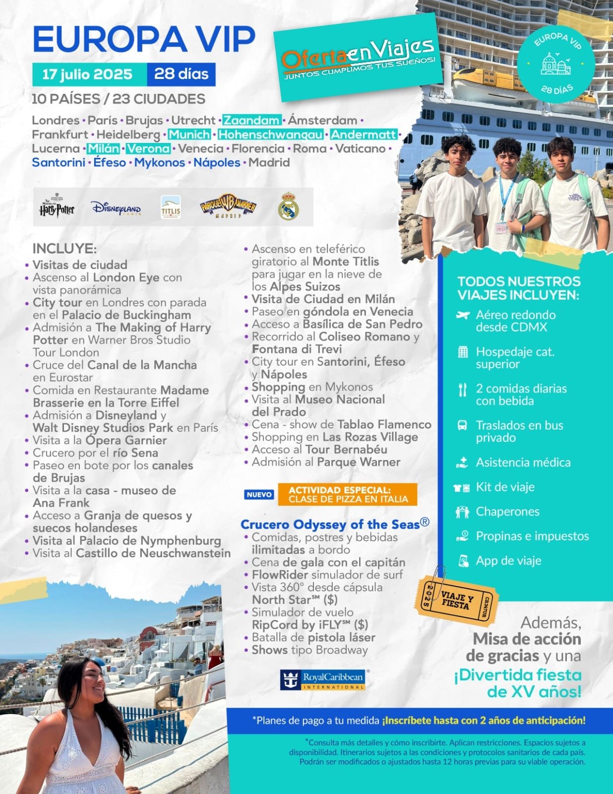 - Esta Operadora “Oferta en Viajes” no se hace responsable si el pasajero no puede viajar en las fechas estipuladas. Al ser salidas grupales, en caso de cancelación por parte del cliente en cualquier momento, aplica un 100% de cargos.